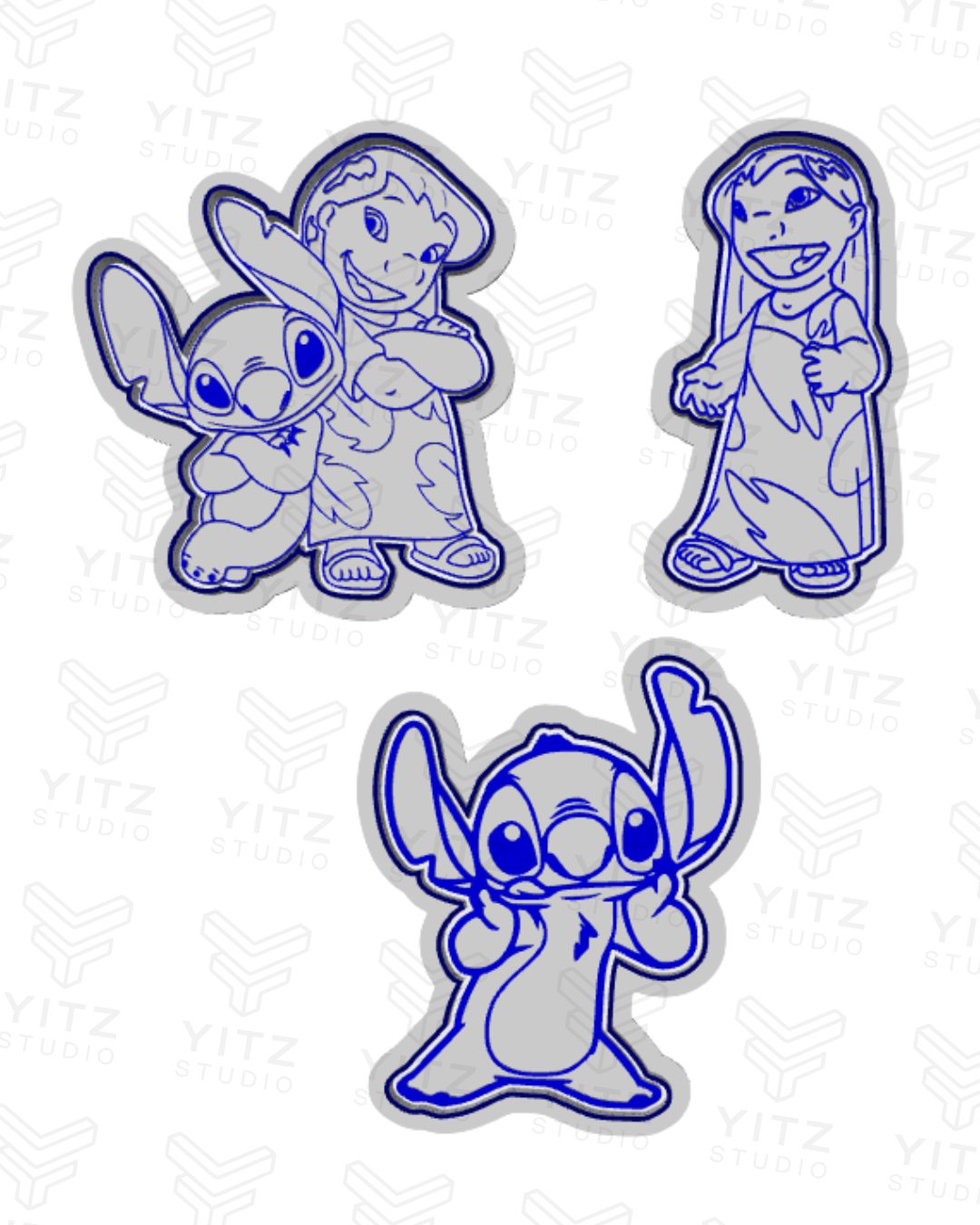 (Stitch dançando, Lilo, e Stitch e Lilo juntos – Total: 3 peças)